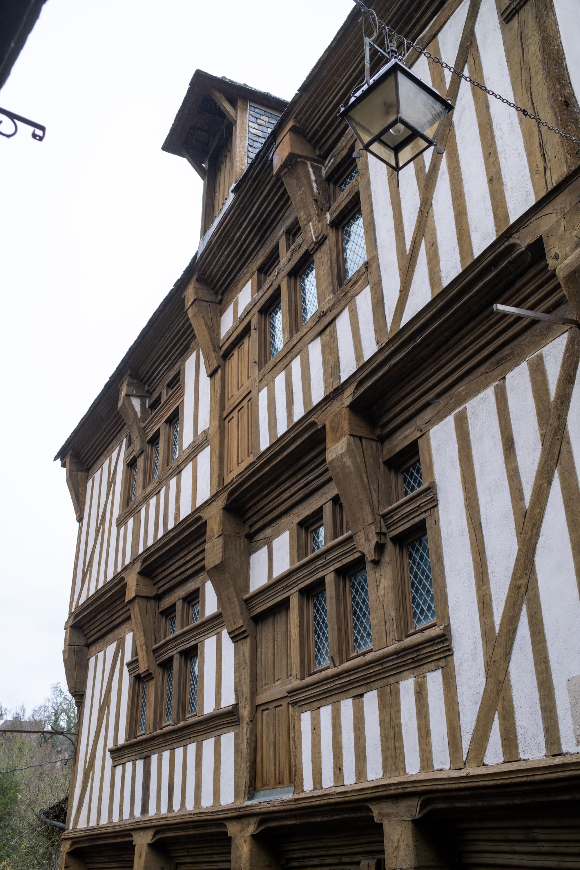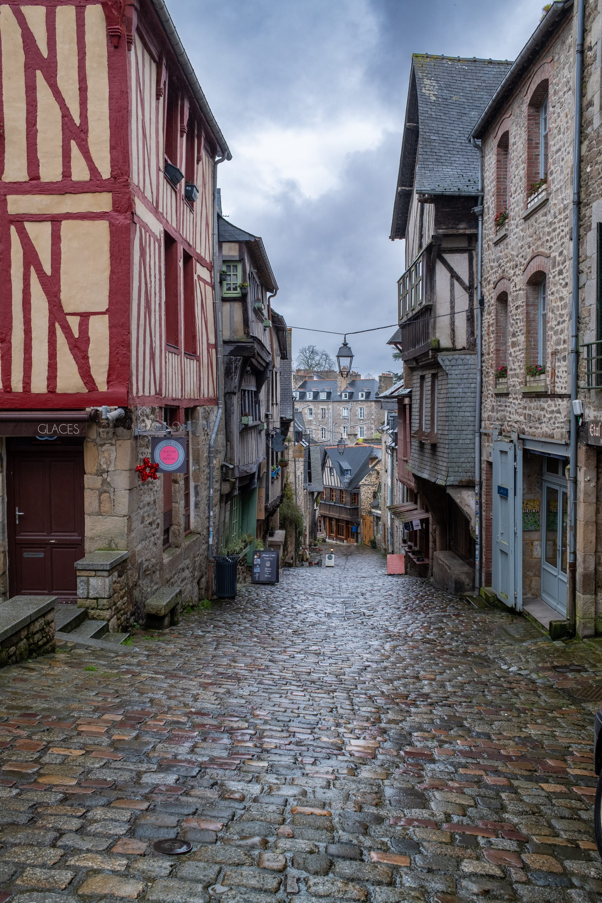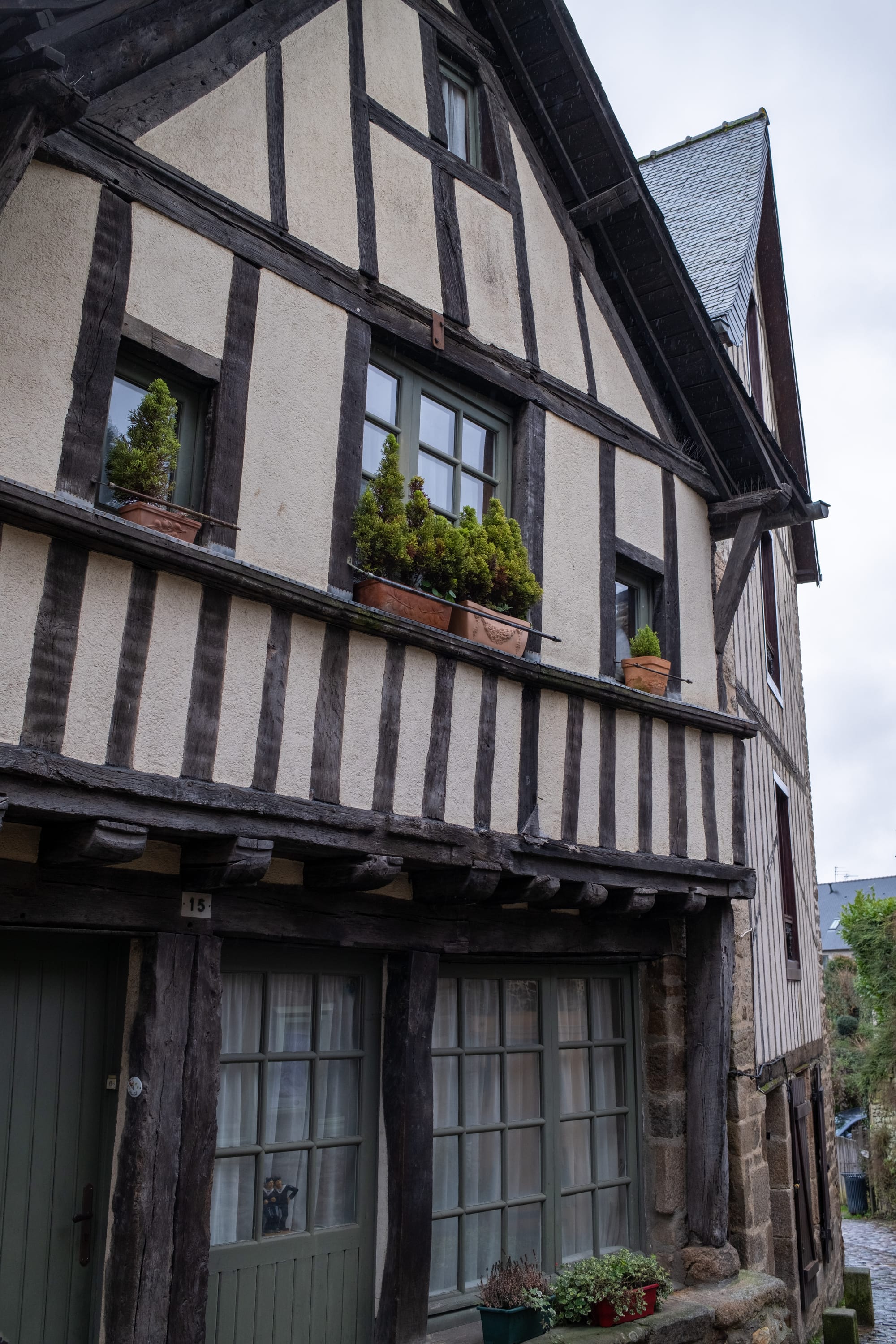 Nous avons ensuite poursuivi notre balade dans le centre-ville de Dinan, en prenant le temps d’observer l’architecture ancienne. Les maisons à colombages, les façades en pierre et les ruelles étroites donnent beaucoup de caractère à la ville. Même sous la pluie, chaque détour de rue offrait de nouveaux détails à photographier.