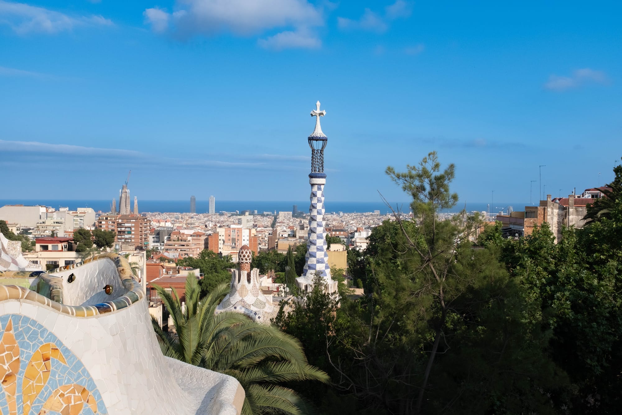 Là encore, l’empreinte de Gaudí est partout : sculptures, bancs ondulants recouverts de mosaïques colorées, structures inspirées de la nature… Nous avons aperçu la maison où il vécut, sans pouvoir la visiter, et profité d’une vue sur Barcelone et la Méditerranée. Malgré l’affluence, les visiteurs se concentraient surtout sur certains points emblématiques (place & escalier), laissant par moments la sensation d’avoir un peu de calme au milieu du parc.