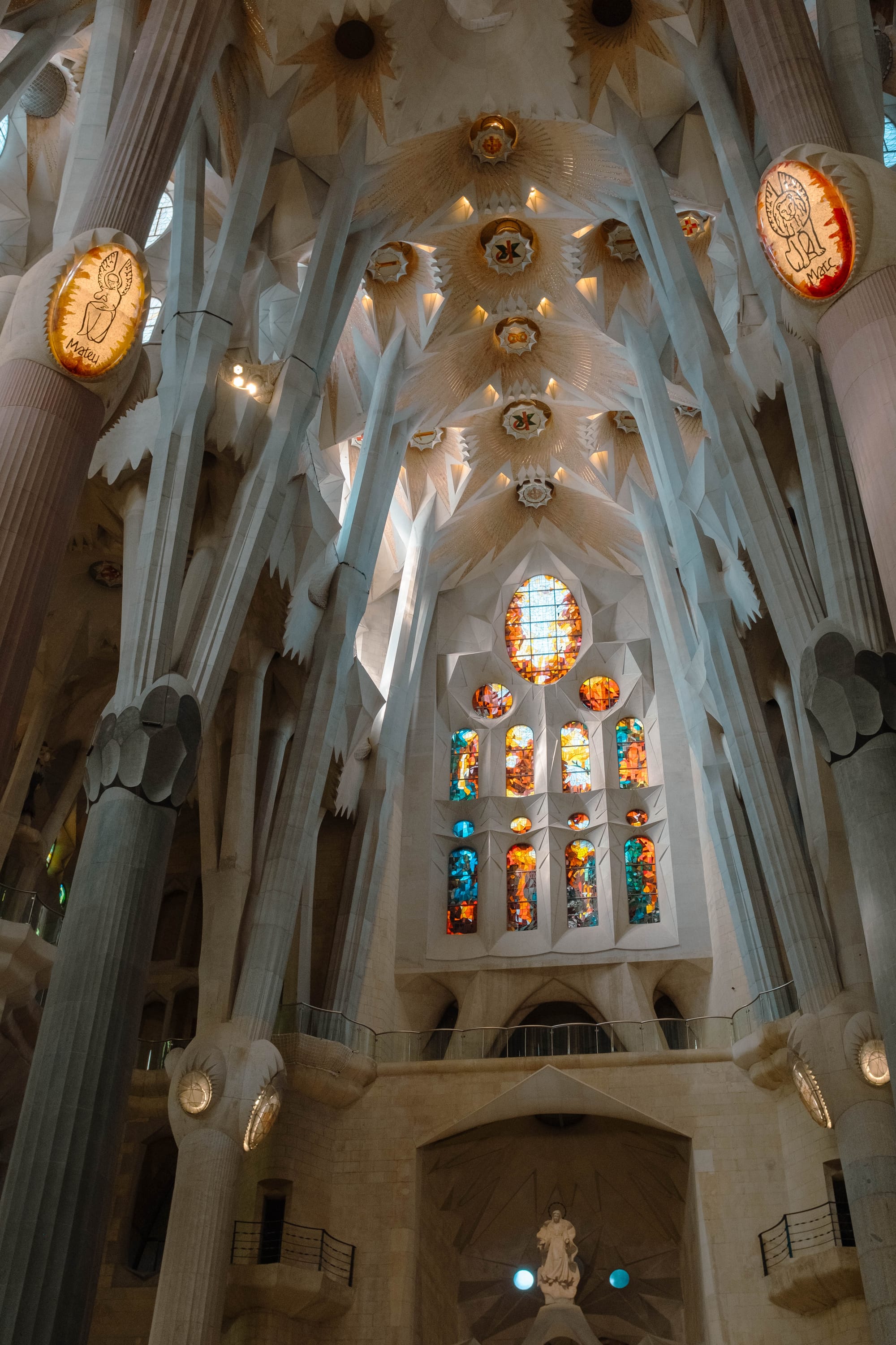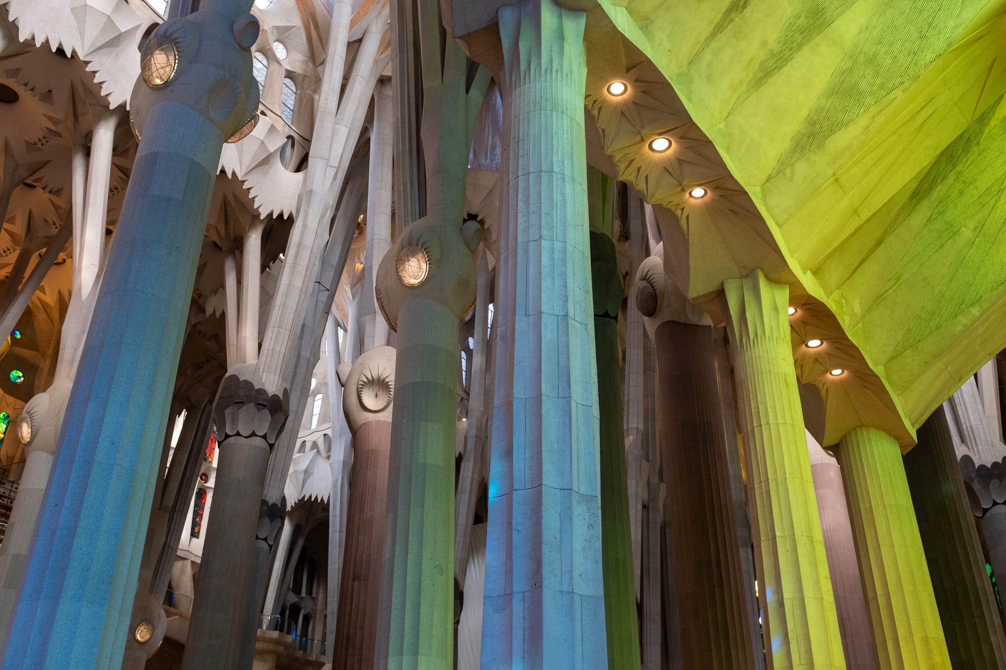À l’intérieur, la beauté dépasse ce que montrent les documentaires : en quelques heures, nous avons vu la lumière changer, filtrée par les vitraux aux couleurs intenses, créant une atmosphère presque irréelle. Les hautes colonnes, élancées comme des troncs, donnent l’impression de se promener au cœur d’une forêt sacrée.