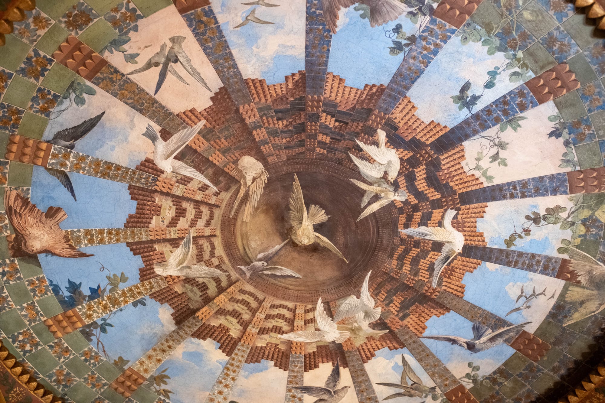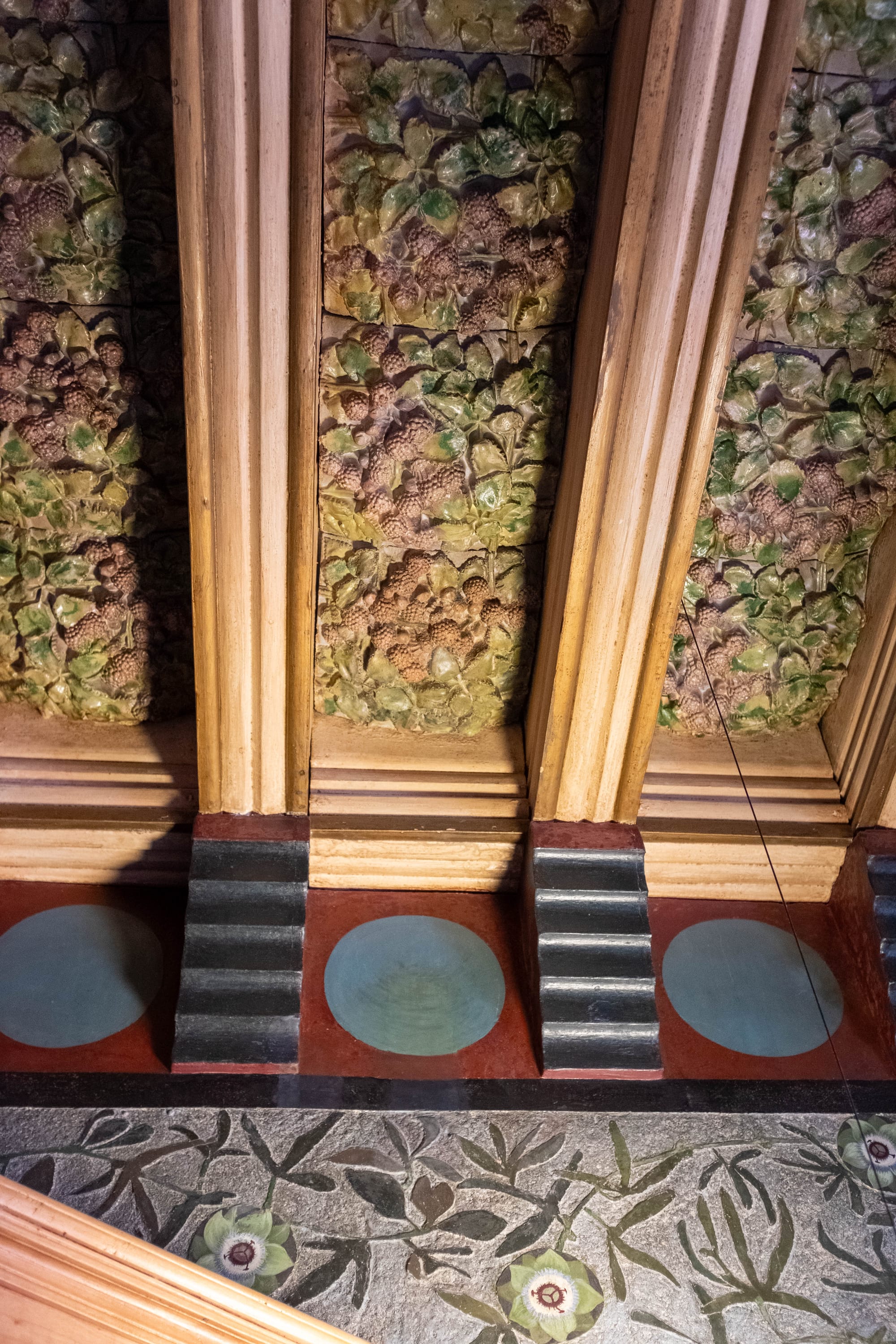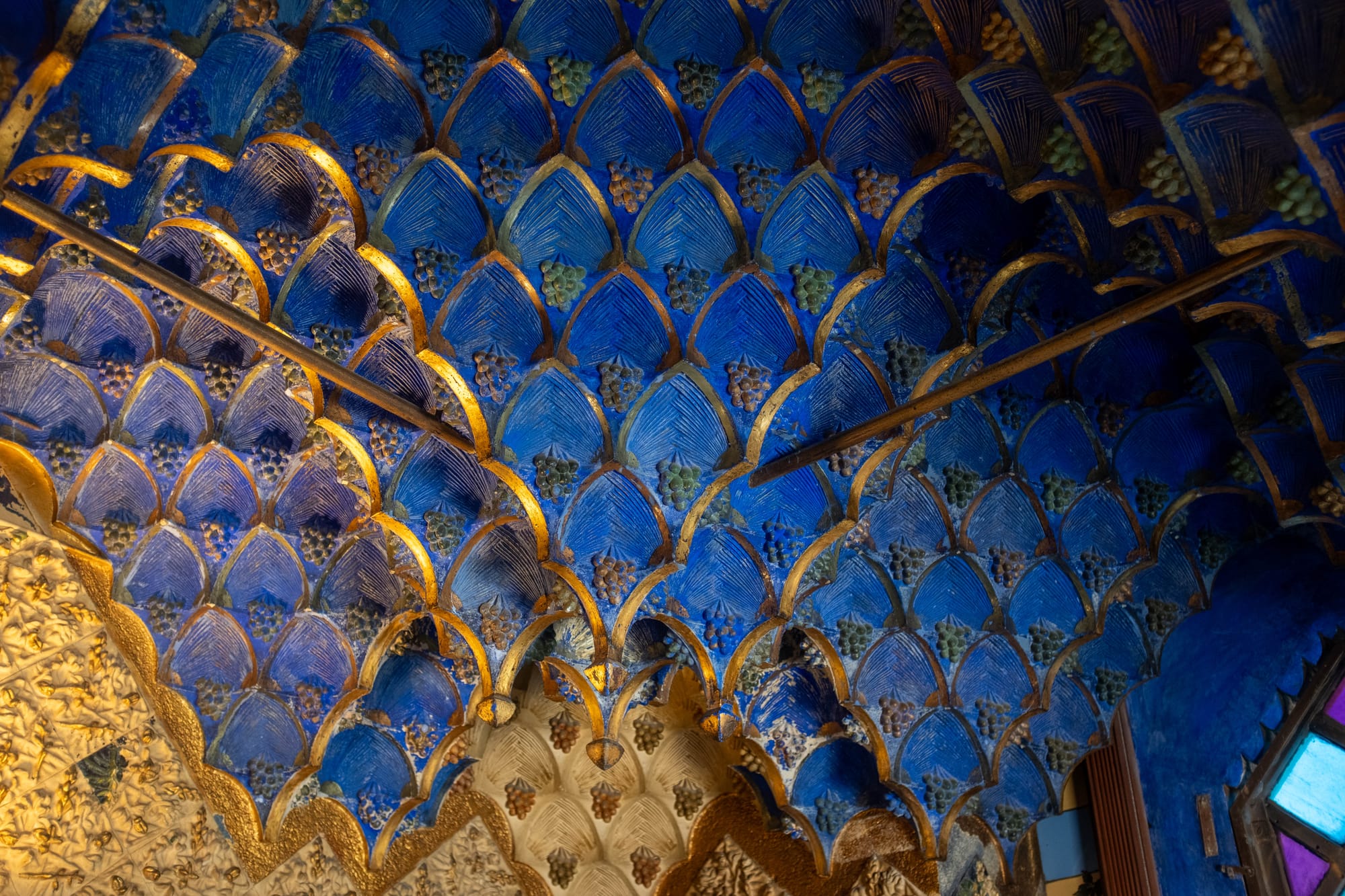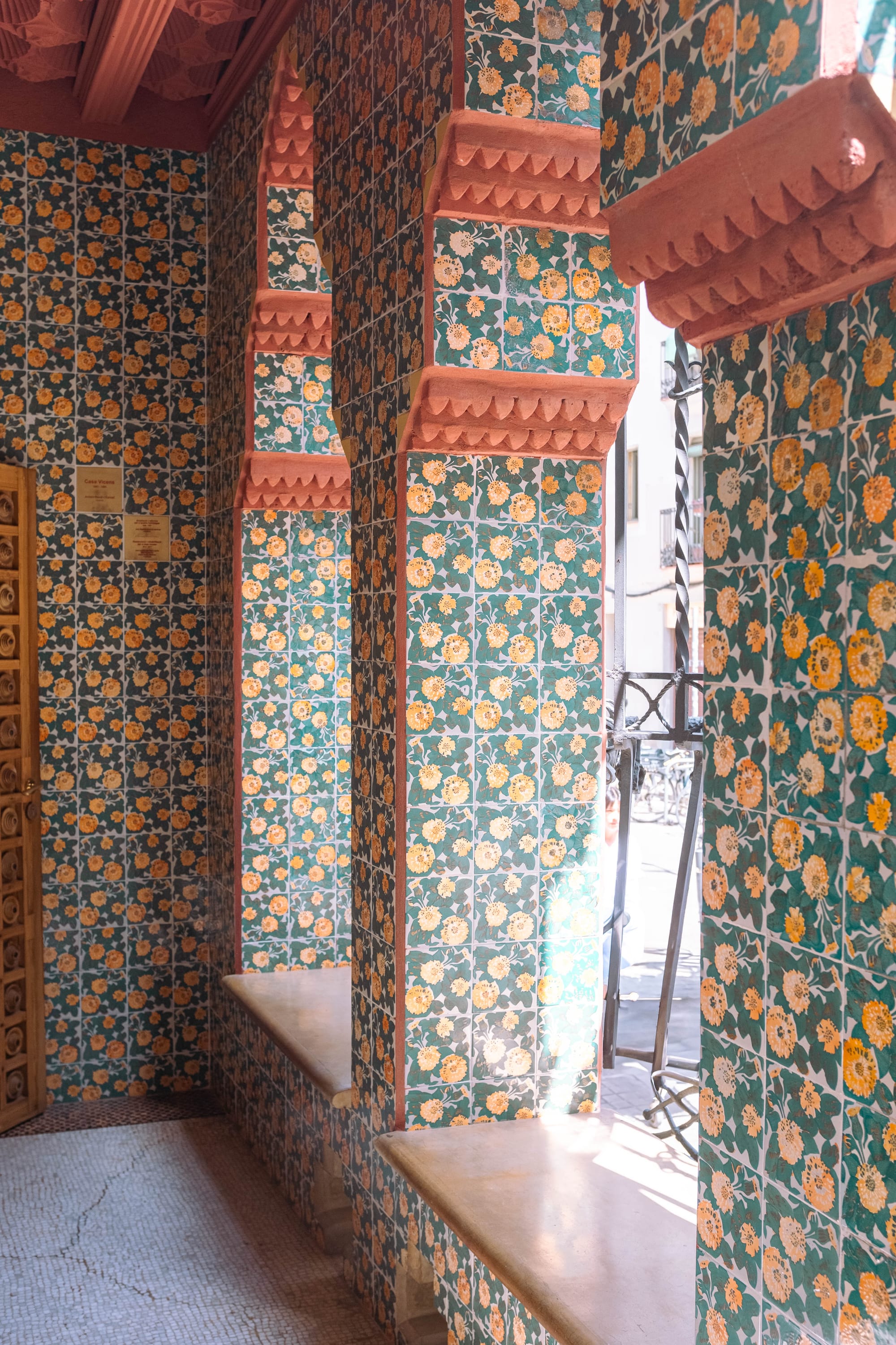 À l’intérieur de la Casa Vicens, chaque pièce révèle l’audace des débuts de Gaudí : plafonds richement décorés, détails végétaux omniprésents, jeux de couleurs et de matières qui donnent à la maison une atmosphère unique, à la fois raffinée et chaleureuse.