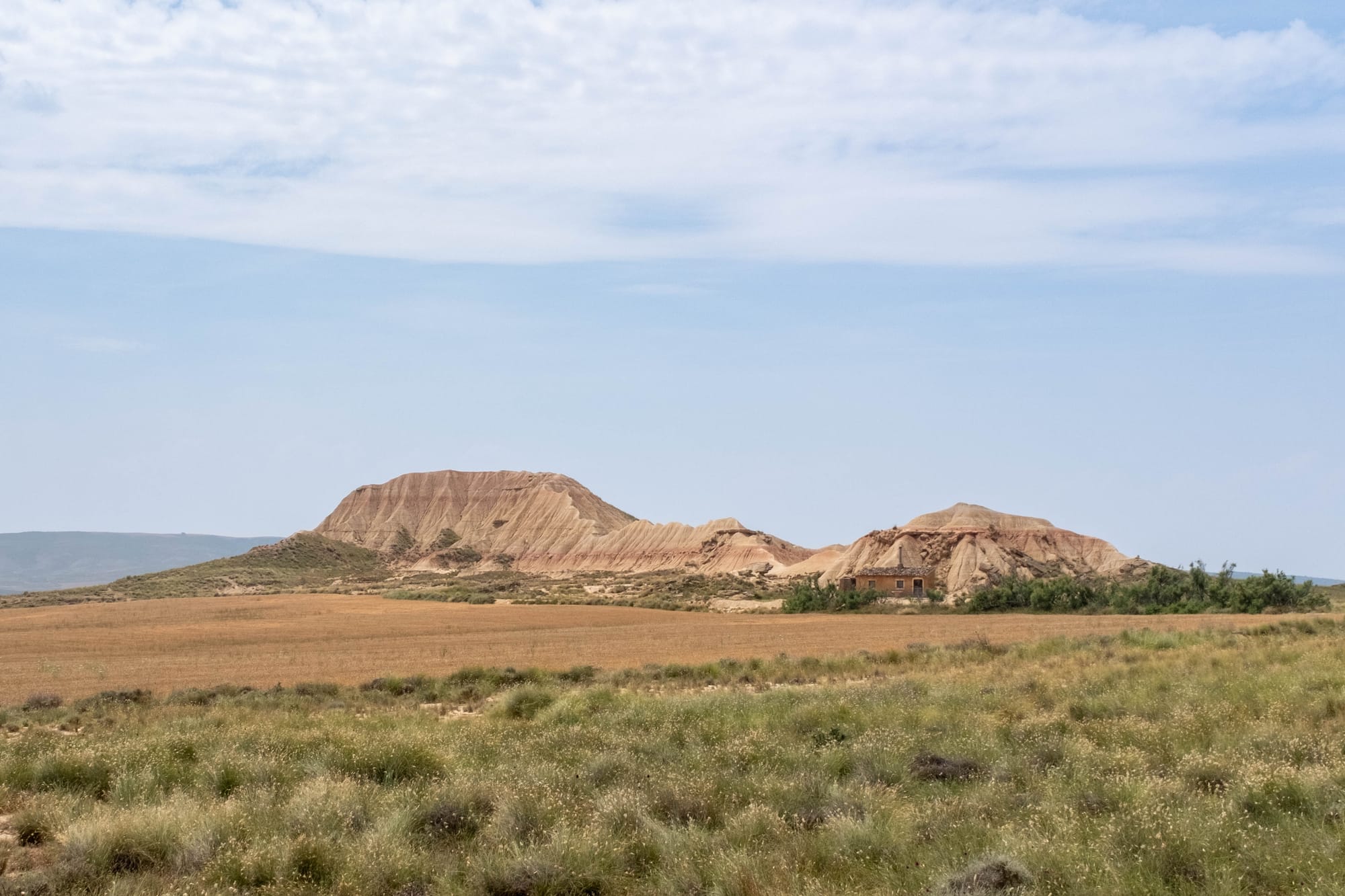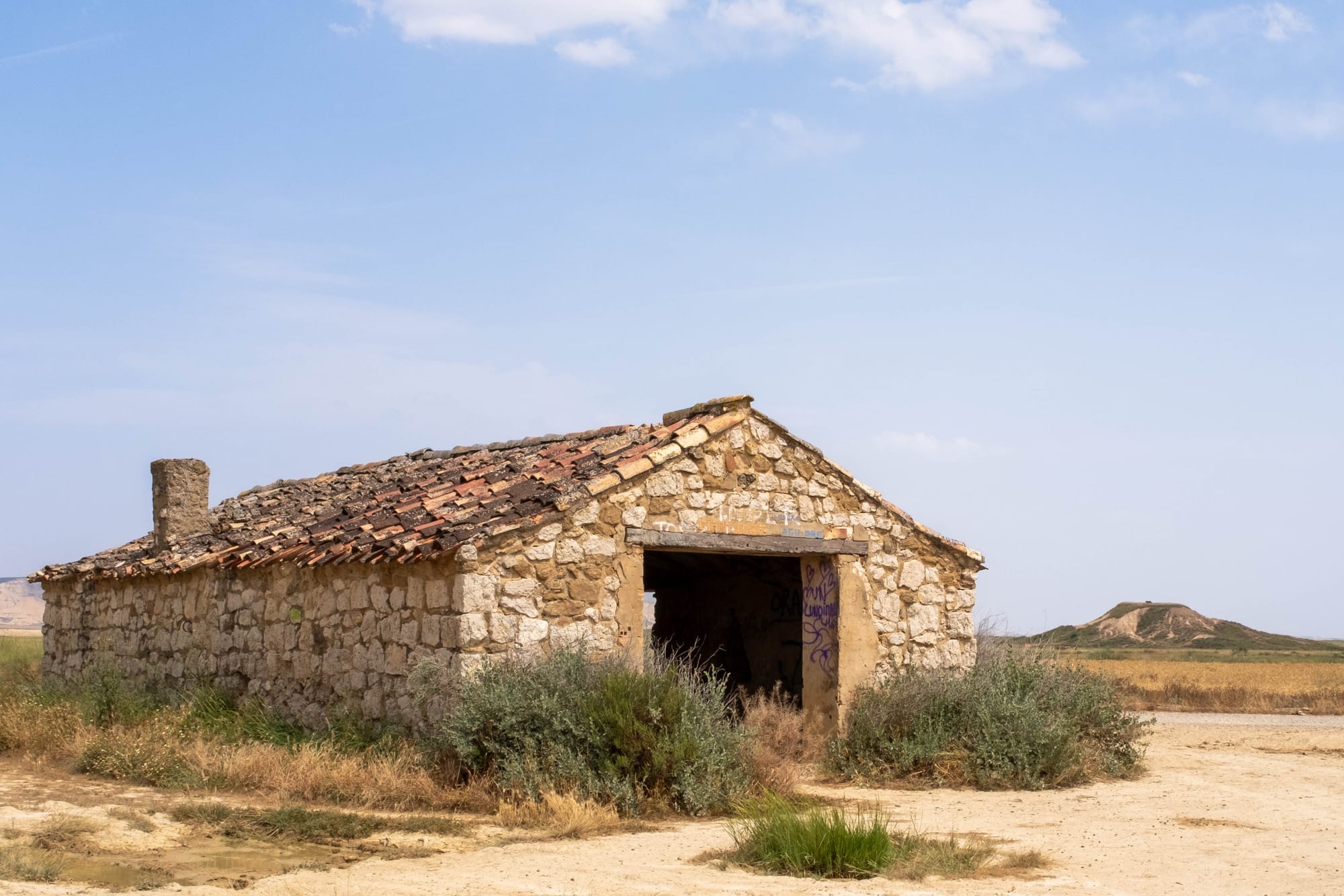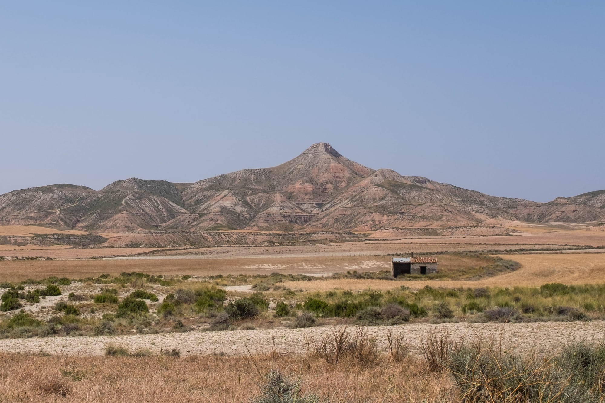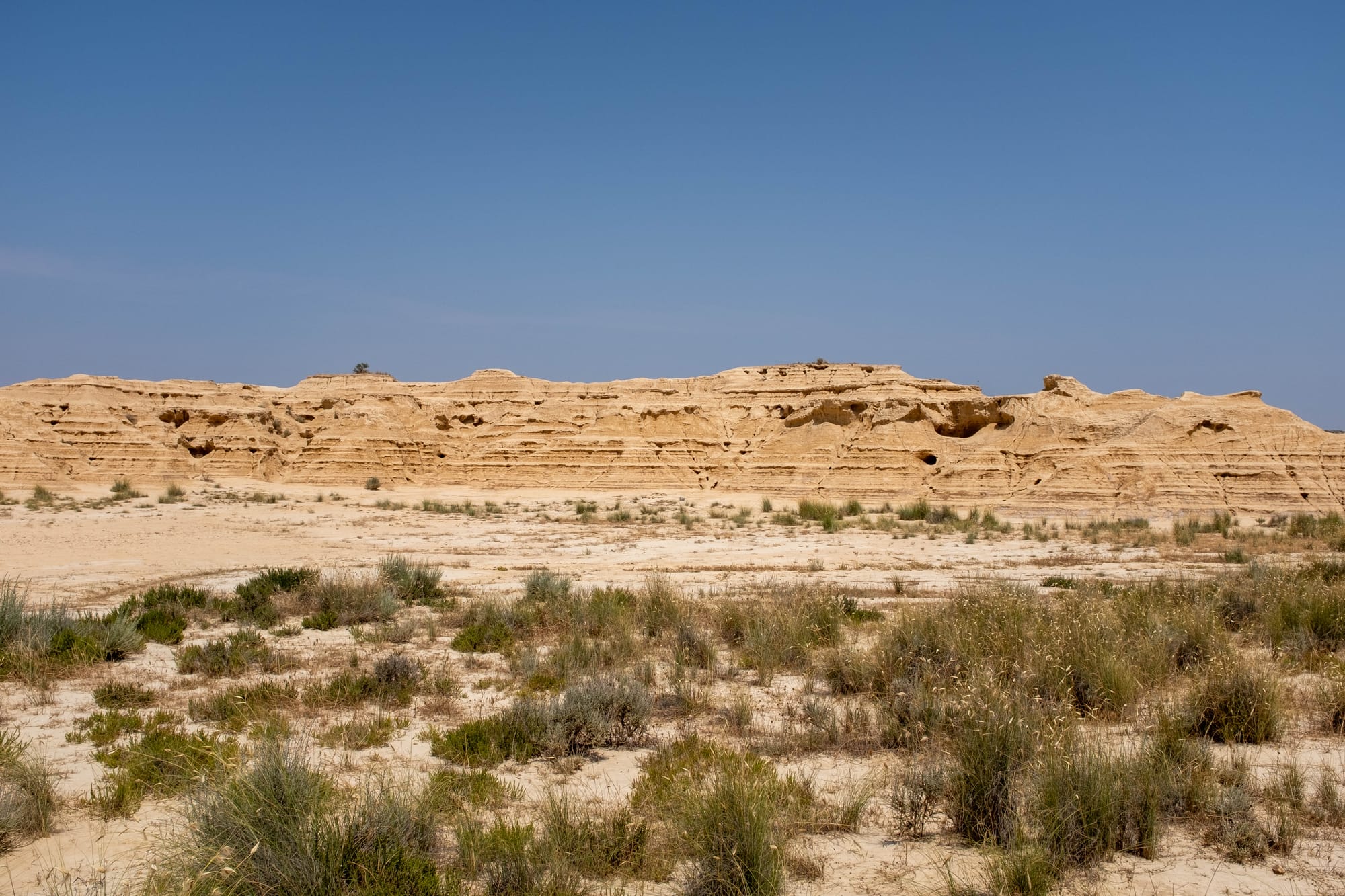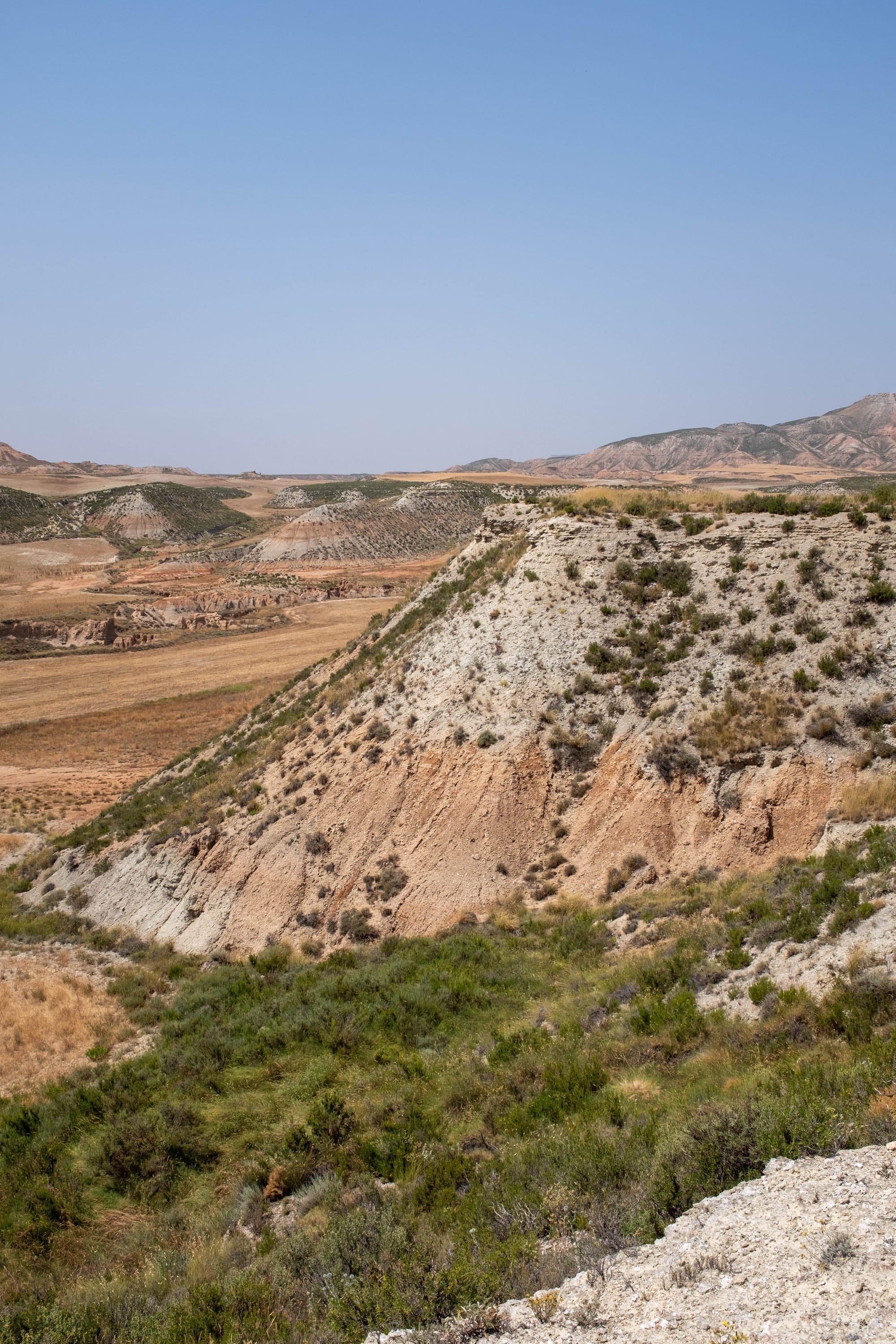 Nous avons consacré deux jours à la découverte du désert des Bardenas, guidés par les précieux conseils du personnel de l’hôtel Aire de Bardenas. La première partie fut le « désert blanc », une zone aride et lumineuse, ainsi nommée à cause de la couleur claire de ses sols gypseux. L’itinéraire consiste à suivre une route qui contourne une base militaire encore active, donnant parfois un contraste étonnant entre ce paysage naturel presque lunaire et la présence humaine.