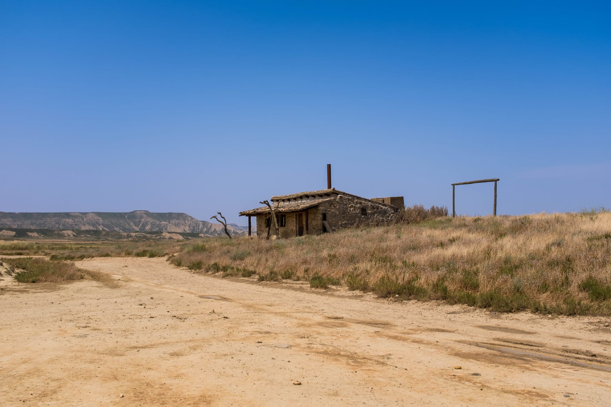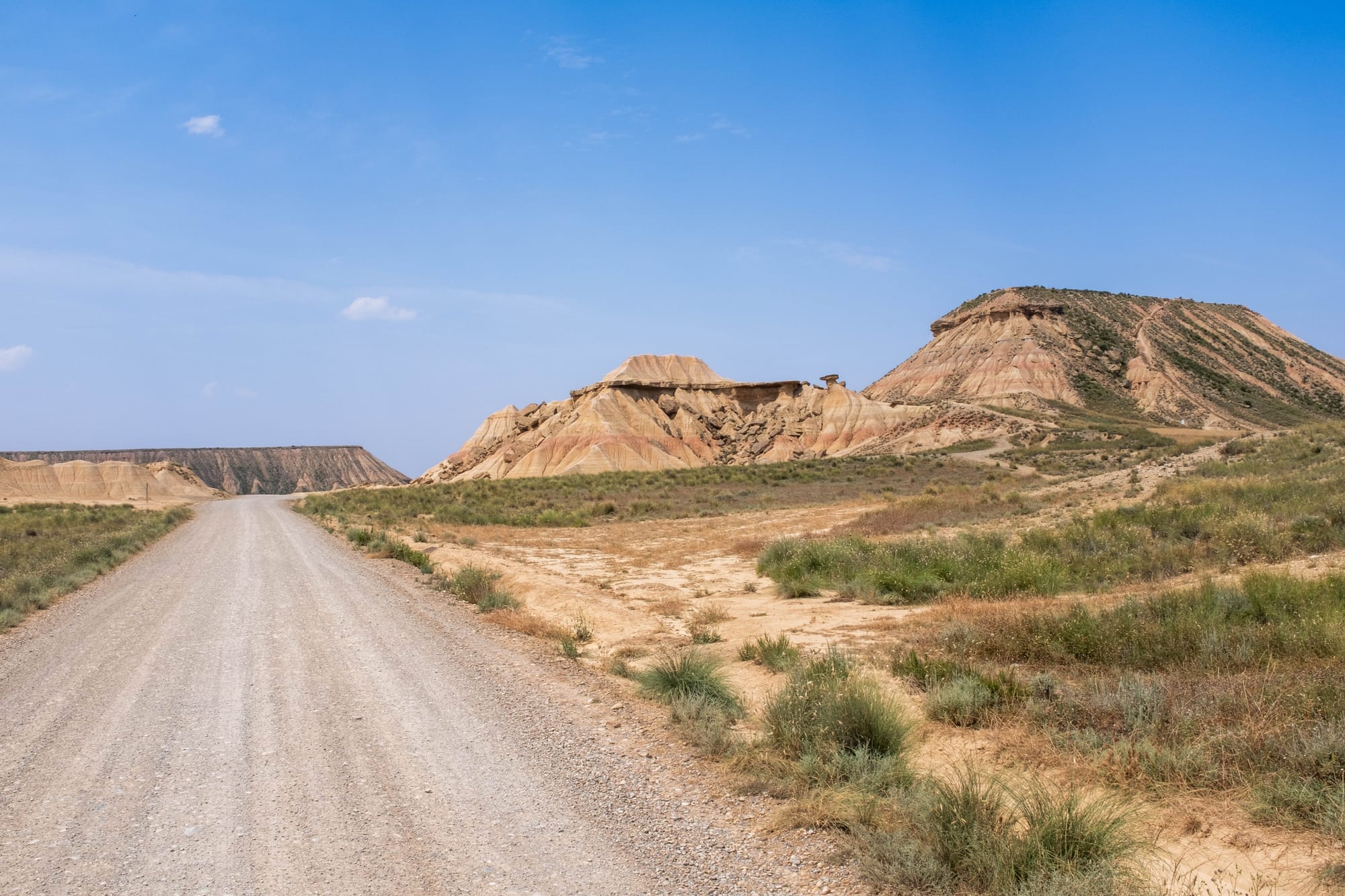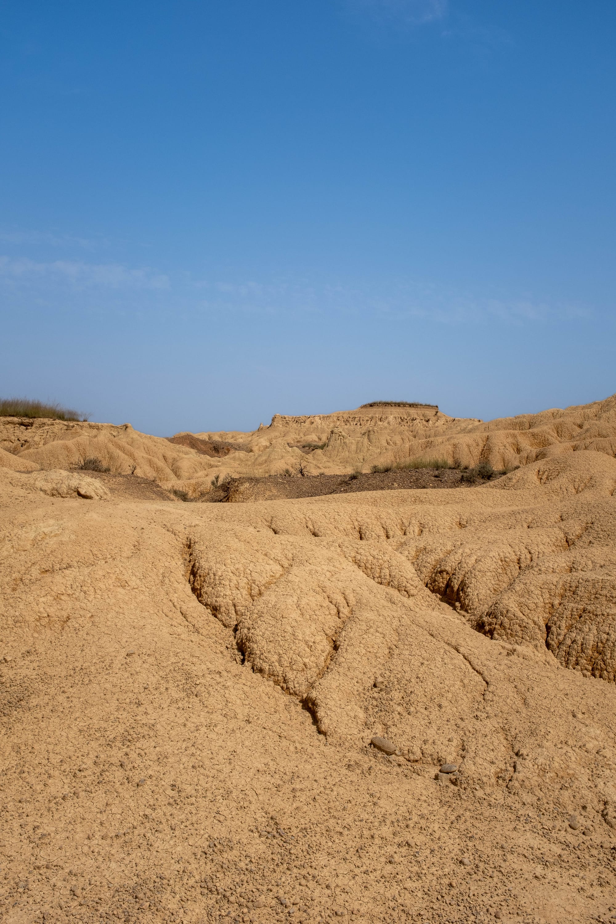 Depuis la route caillouteuse qui serpente à travers le désert des Bardenas, nous avons pris quelques photos pour capturer l’atmosphère brute du lieu. Le contraste entre le bleu du ciel, les reliefs sculptés par l’érosion et la poussière soulevée par la piste donnait des images saisissantes.
