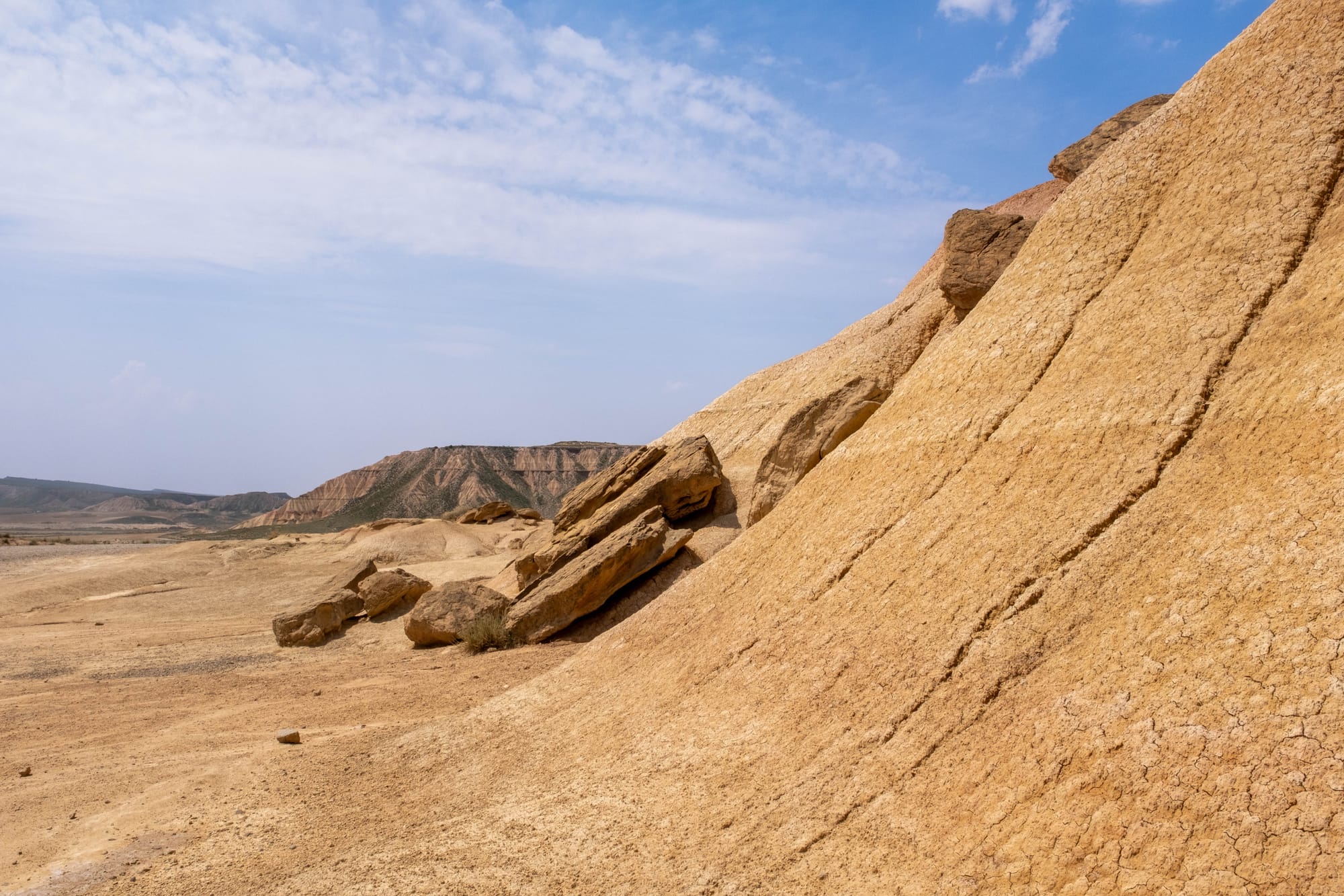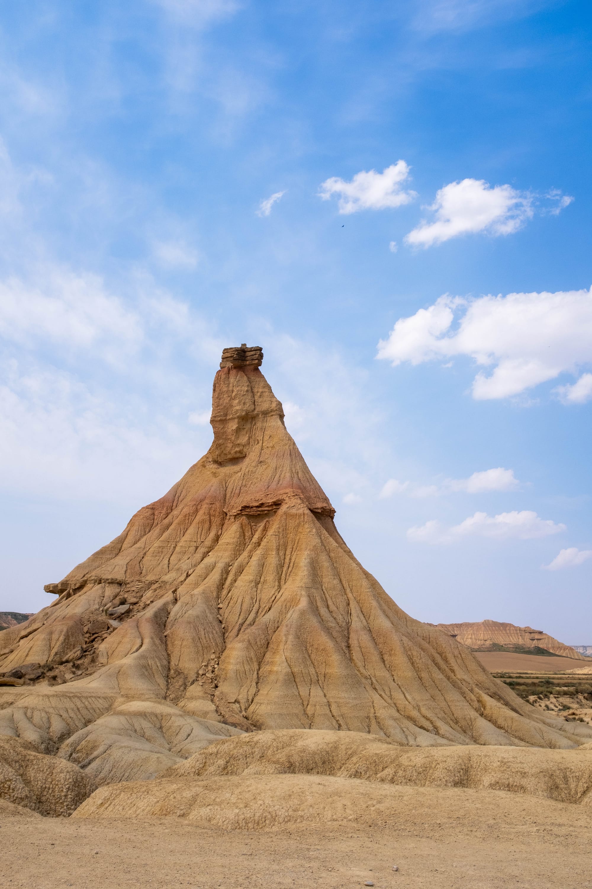 Le désert des Bardenas s’est formé il y a plusieurs millions d’années, à la suite du retrait d’une mer intérieure qui recouvrait la région. Les dépôts de sédiments marins, mêlés à ceux apportés par les rivières, ont créé une épaisse couche de sols argileux, gypseux et calcaires. L’érosion, due au vent et aux rares mais violentes pluies, a ensuite sculpté ce paysage spectaculaire de canyons, cheminées et plateaux, donnant au désert son visage si unique.