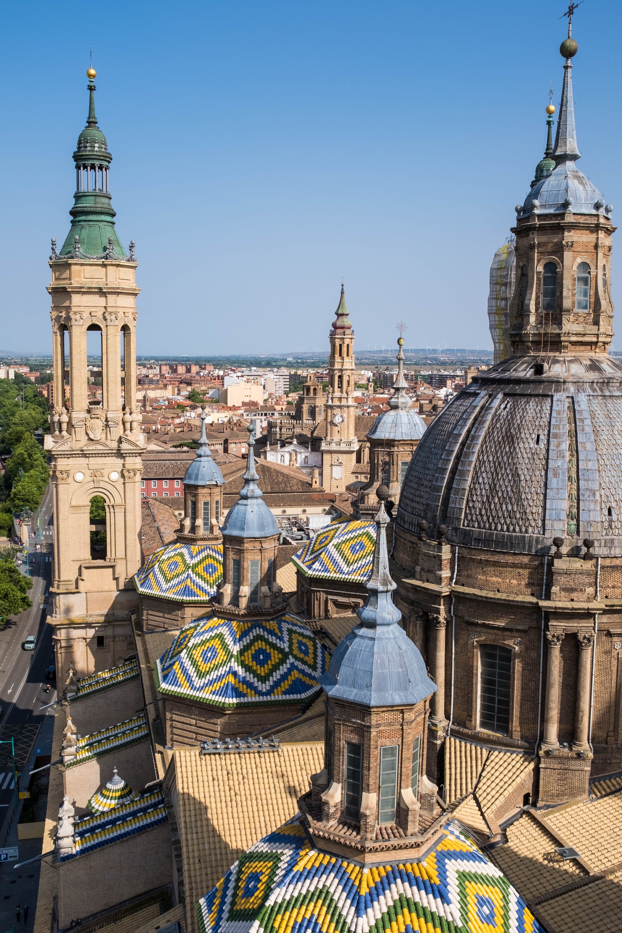Nous n’avons malheureusement pas pu profiter de la Cathédrale Saint-Sauveur autant que nous l’aurions souhaité, car nous avions rendez-vous pour monter dans la tour et admirer la ville depuis un point de vue panoramique. Cette ascension nous a permis de découvrir Saragosse sous un angle différent, offrant un panorama impressionnant sur ses toits, ses églises et ses places animées.