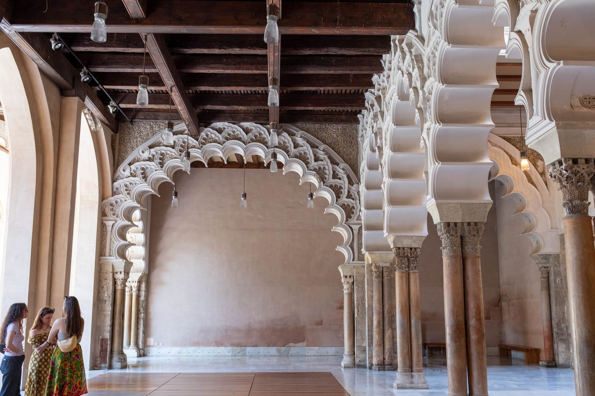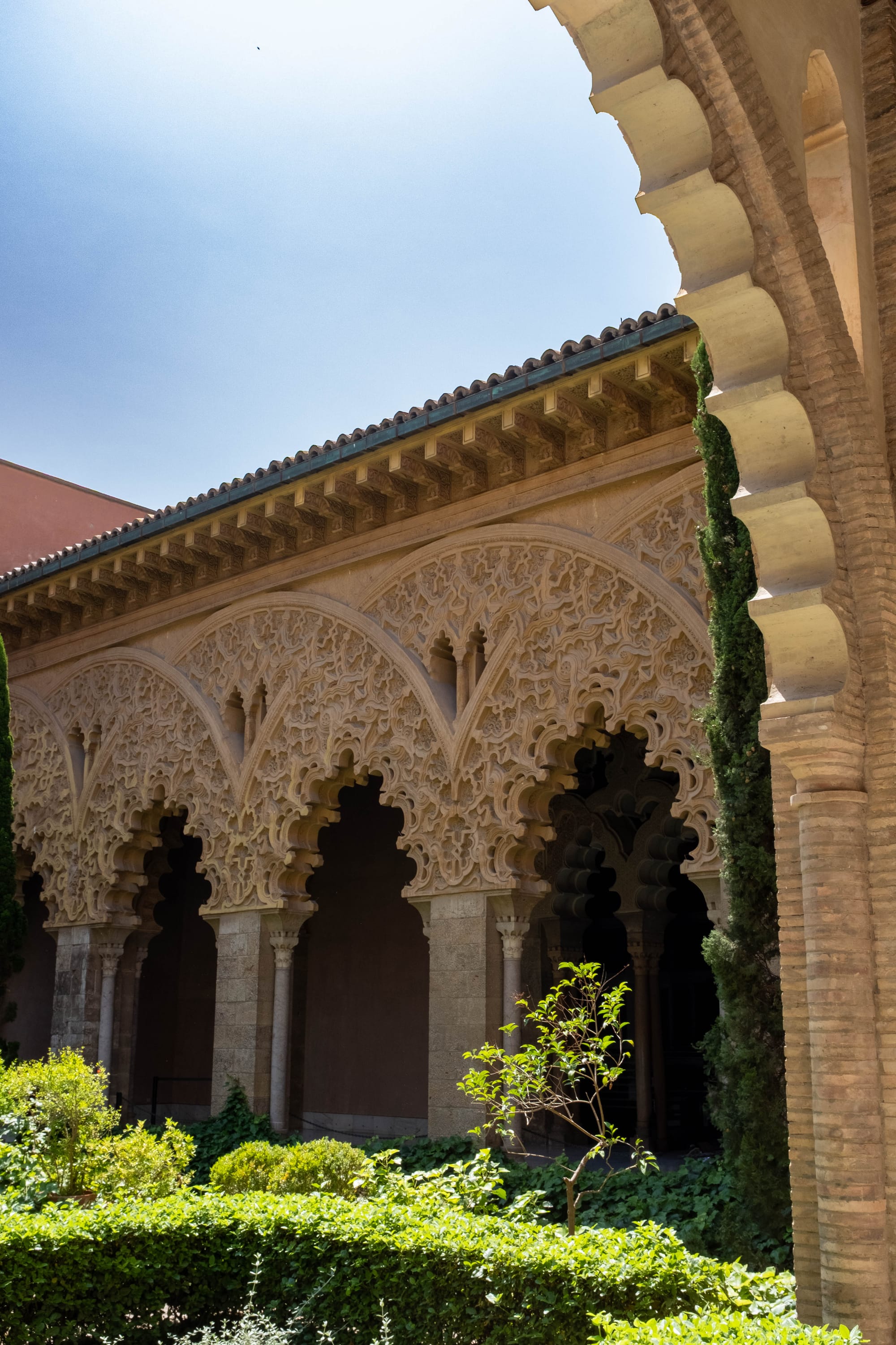 Le Palais de l’Aljafería, à Saragosse, est un magnifique témoignage de l’architecture islamique médiévale en Espagne. Ses patios, arcs en fer à cheval et décorations délicates mêlent finesse et harmonie, témoignant du raffinement des Nasrides et de l’histoire riche de la région. La visite permet de se plonger dans un lieu chargé d’histoire, entre splendeur orientale et traces de transformations ultérieures, jusqu’à son rôle actuel de siège des Cortes d’Aragon.
